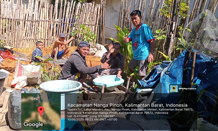 LABAI MANDIRI – Perangkat Desa Labai mandiri secara gotong royong membantu warganya untuk membangun water closet (WC) atau jamban sehat pada Selasa, (13/05/2025) pagi.
